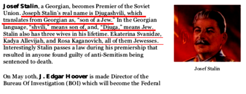 Εν συνεχεία, το 1921, ο Στάλιν, βοήθησε τον Κεμάλ Ατατούρκ (κατόπιν γραπτής συμφωνίας) δίνοντάς του χρυσό και οπλισμό. Δεν μπορώ να μην αναφέρω μια πληροφορία πολλαπλής χρησιμότητος, παρακάμπτοντας για λίγο το θέμα, για τον Στάλιν που ενδεχομένως να δικαιολογήσει την ανθελληνική του στάση. Ο Στάλιν ήταν γεωργιανός και το πραγματικό του όνομα ήταν Ιωσήφ Τζουκασβίλι. «Στάλιν» σημαίνει «ατσαλένιος», «σταλ» στα ρώσικα είναι το «ατσάλι». «Σβίλι» στα γεωργιανά σημαίνει «ο γιός τοῦ». «Τζούκα» σημαίνει «εβραίος». Δηλαδή το πραγματικό όνομα του Στάλιν σήμαινε «ο γιός του εβραίου». Στα ελληνικά θα τον λέγαμε «Εβραιόπουλος».