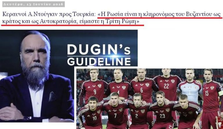 Αυτά που γινόντουσαν παλιά γίνονται και τώρα. Οι Έλληνες περιμένουν τους Ρώσους να μας σώσουν, αλλά η Ρωσία, δια του Α. Ντούγκιν, ανακοίνωσε ότι η Ρωσία είναι κληρονόμος του Βυζαντίου, ότι η Βυζαντινή αυτοκρατορία τούς ανήκει και ότι η Μόσχα θα είναι η Τρίτη Ρώμη (Σημ. Η λέξη «Τσάρ» προέρχεται από το «Καίσαρ»). Ακόμη και τα βυζαντινά χρώματα έχουν βάλει στις αθλητικές στολές των ρώσικων ομάδων.